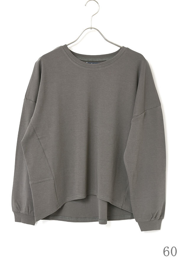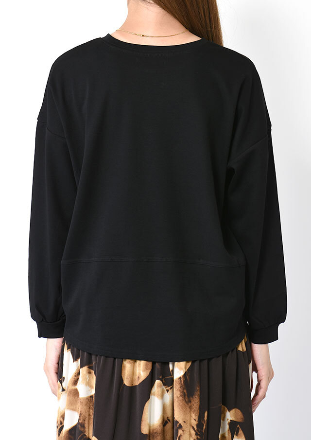 シンプルな無地のクルーネックカットソーに、さりげないディテールを効かせたデザイン。
