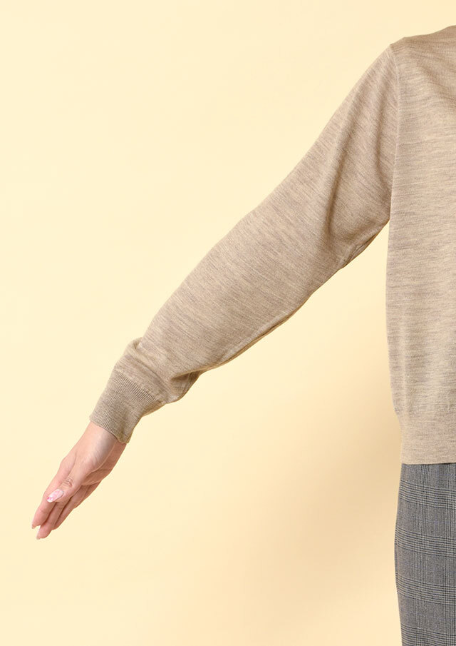 オーストラリアの厳選したエクストラファインメリノウールのみを使用したソフトな風合いと、身体に馴染むしっとりとしたやわらかい着心地、光沢感が特徴です。