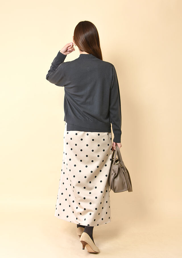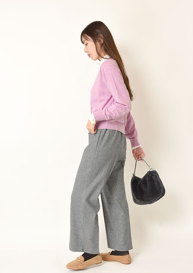 同素材のリブニットとセットで着れば、統一感のある上品なアンサンブルスタイルとしても楽しめます。