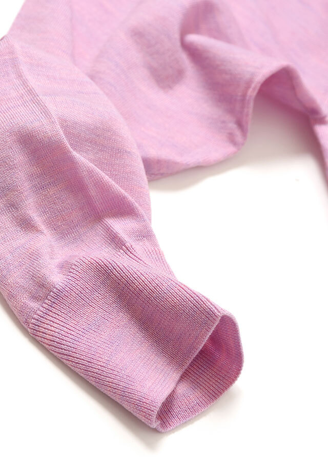 細番手の糸を16Gのハイゲージに編み立てているので、ウールなのに毛玉ができにくく、発色が綺麗なこともポイントです。