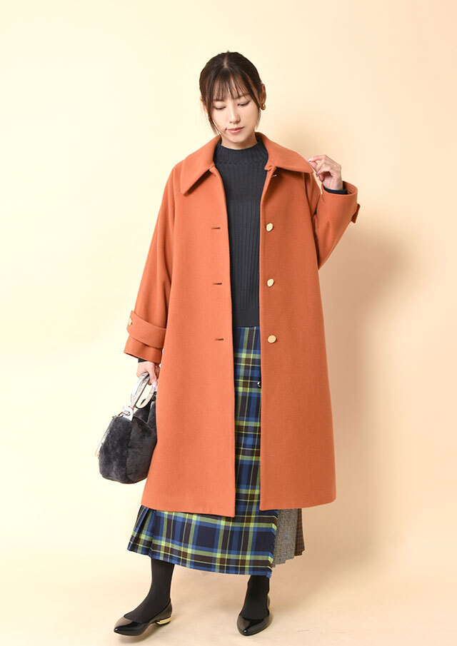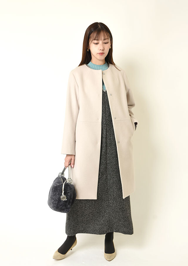 前後差をつけた着丈がさりげない動きを生み、アウトで着ても重たくならず、レイヤードのバランスも整います。