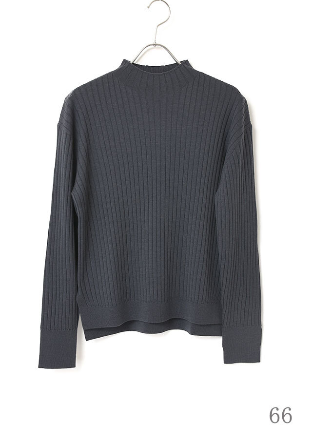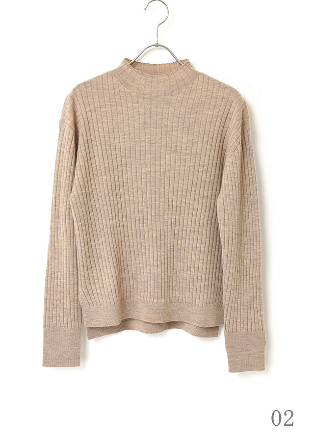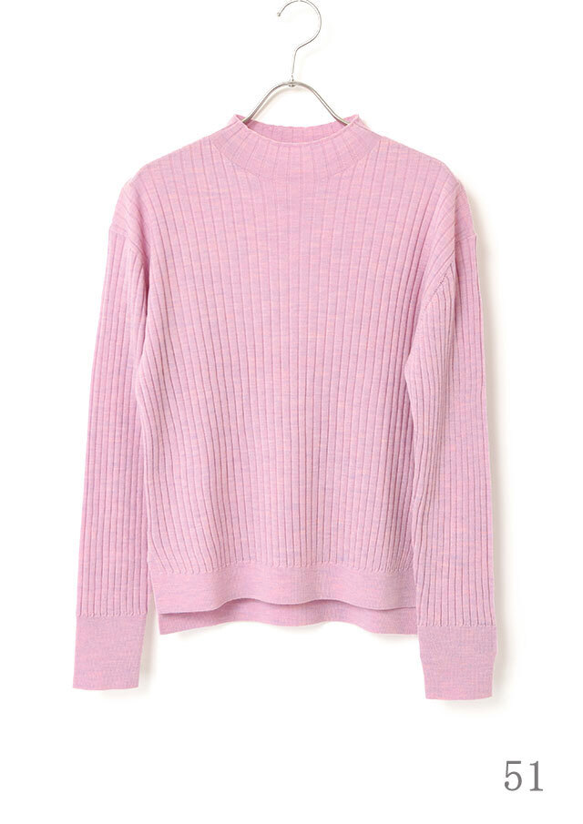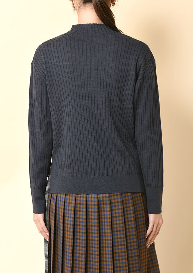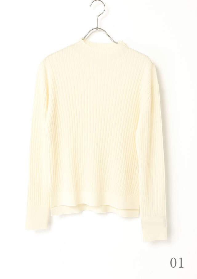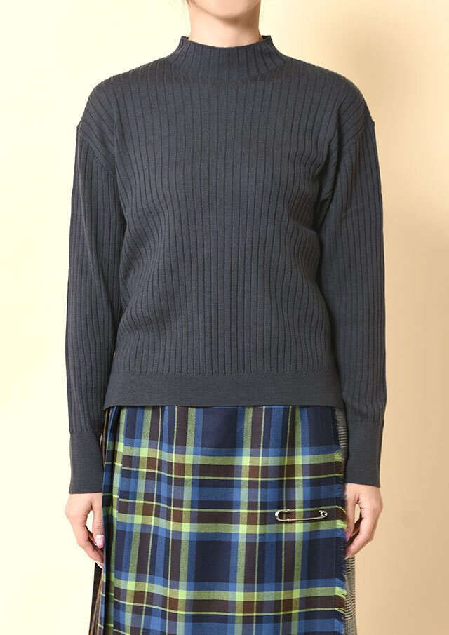 首元にほどよい立ち上がりをつくるハイネックが、顔まわりにスッキリとした印象を添えるニットプルオーバー。