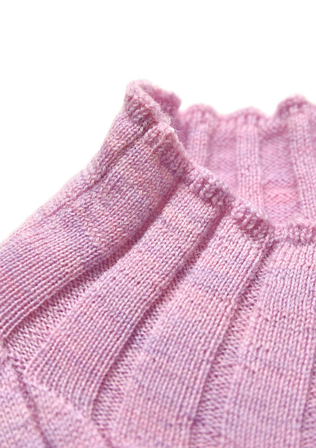 細番手の糸をハイゲージに編み立てているので、ウールなのに毛玉ができにくく、発色が綺麗なこともポイントです。