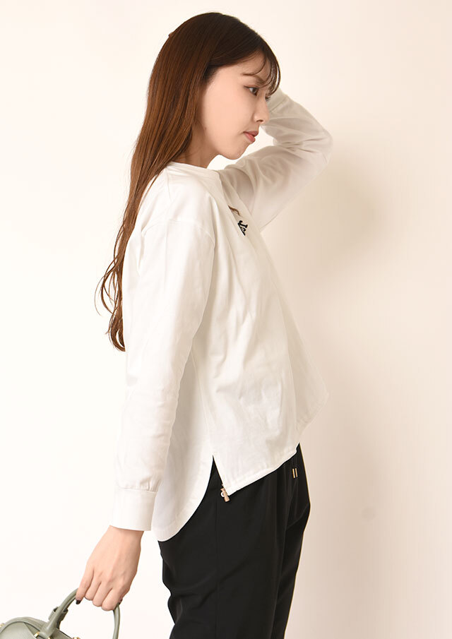 胸元にあしらったロゴ刺繍が、シンプルな中にさりげないアクセントを添えています。