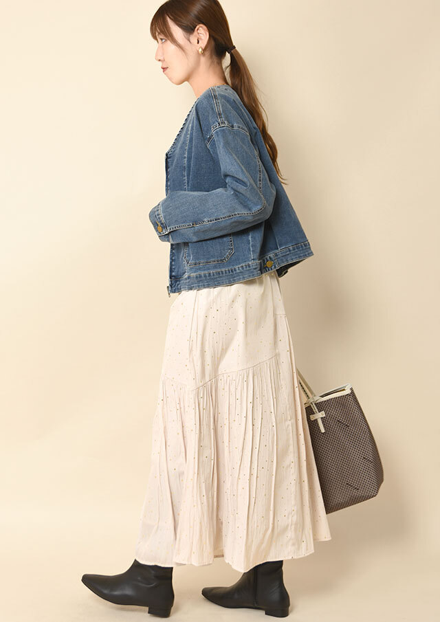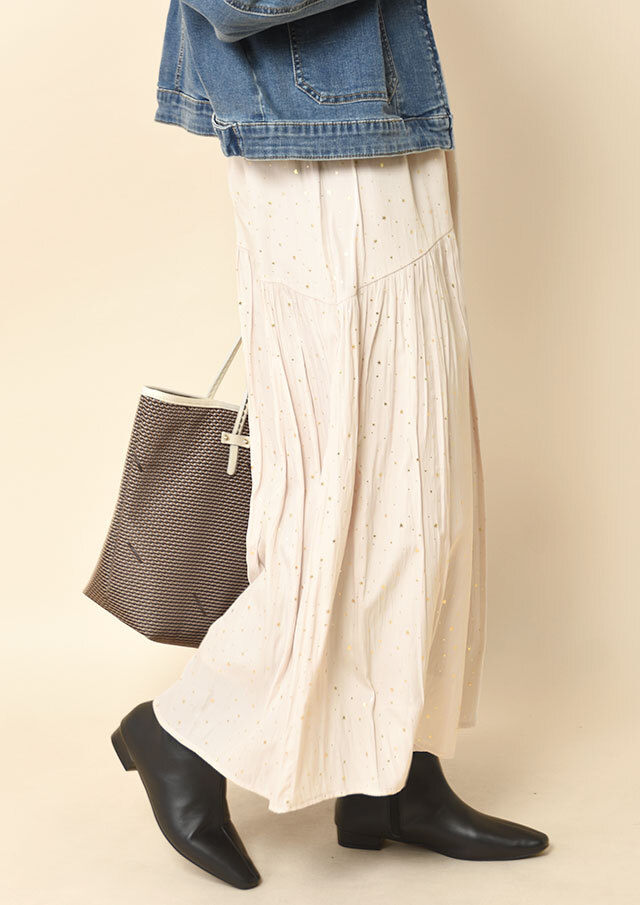 ベストやロングジレと合わせたアレンジはもちろん、同素材のキャミソールと合わせてセットアップで着こなしても◎