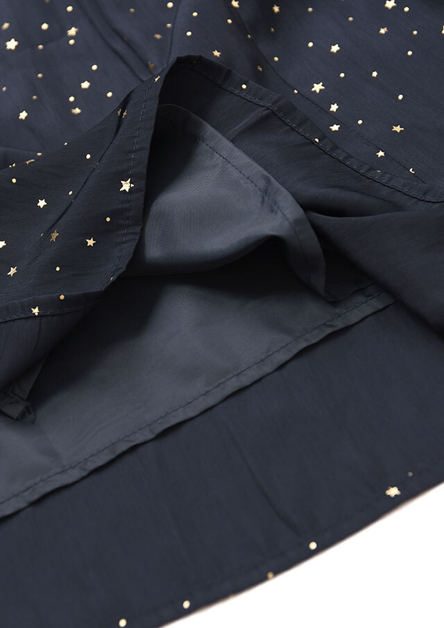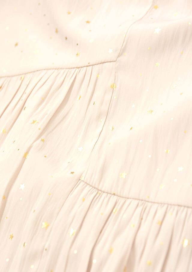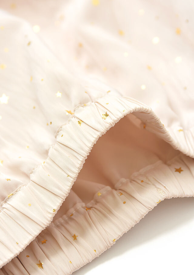 小さな星を箔プリントで施したマットなサテン生地を使用。