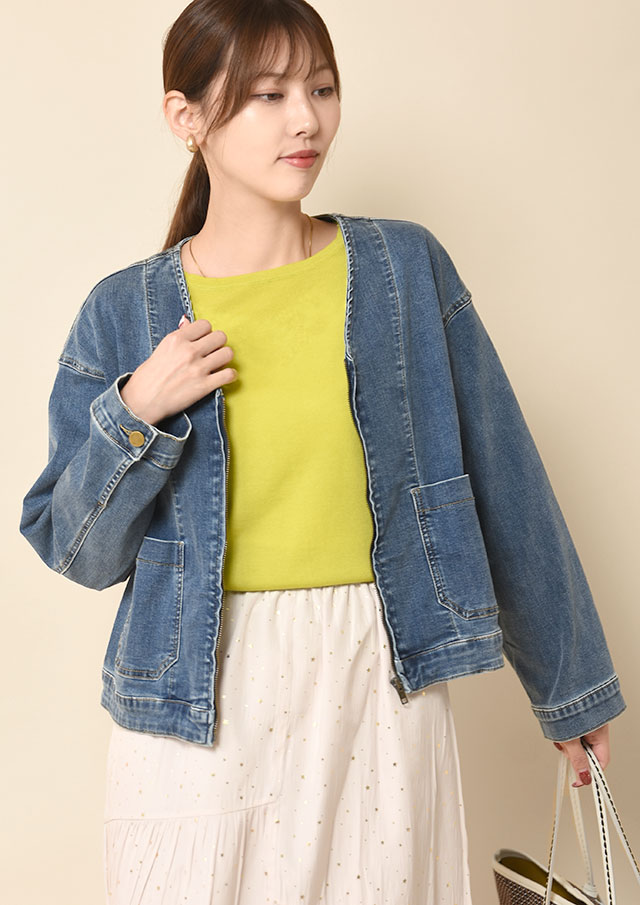 シンプルなトップスと合わせるだけでも、コーディネートが決まるアイテムです。