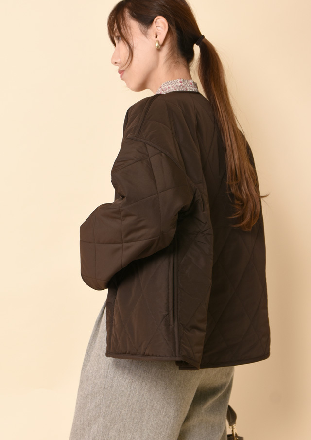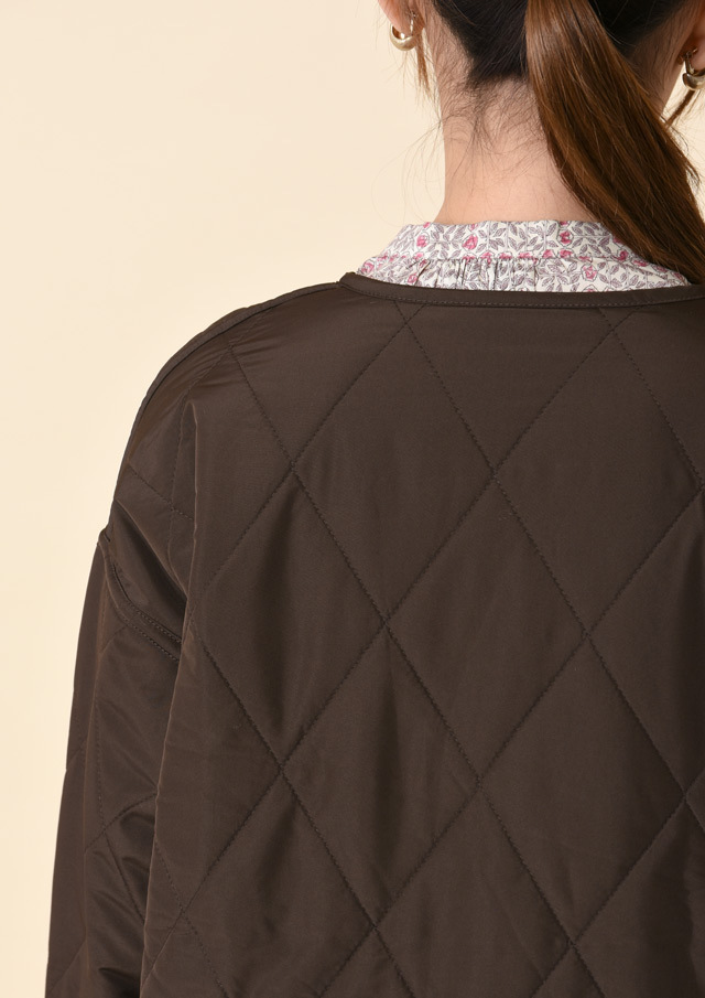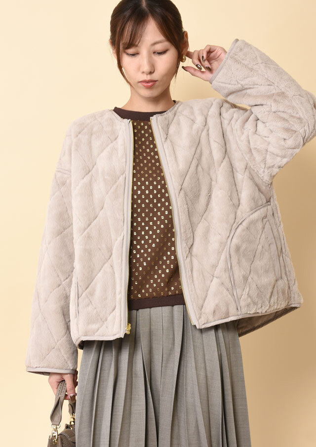 大きめのダイヤモンドキルティングステッチが上品な表情を添え、大人っぽく仕上げています。