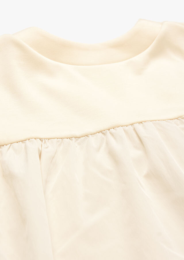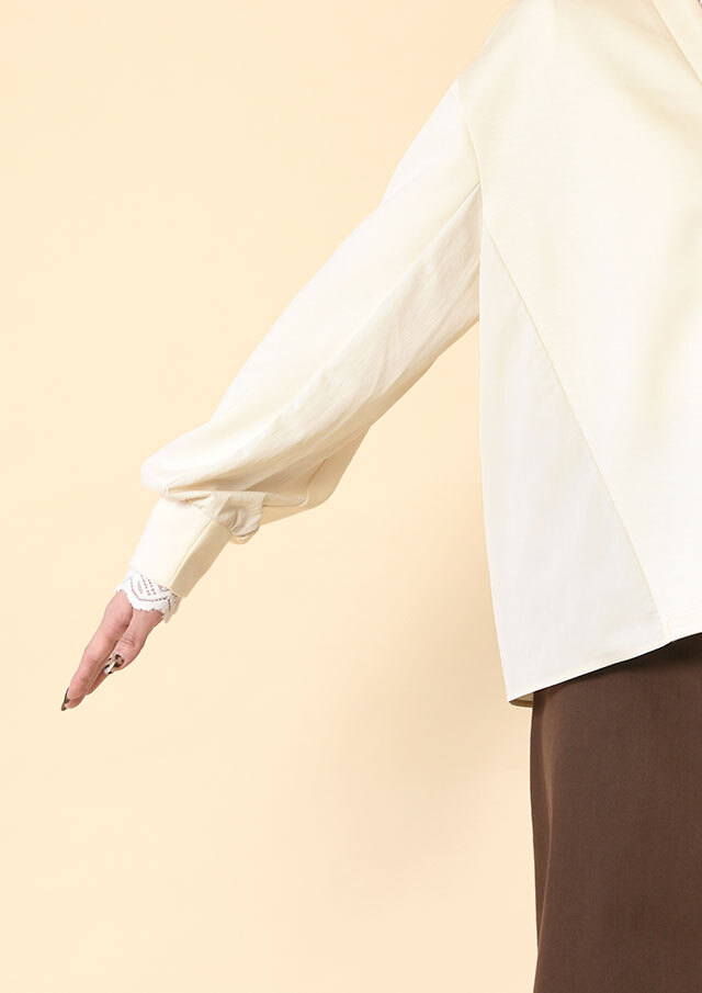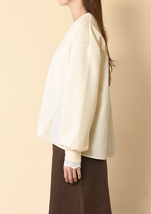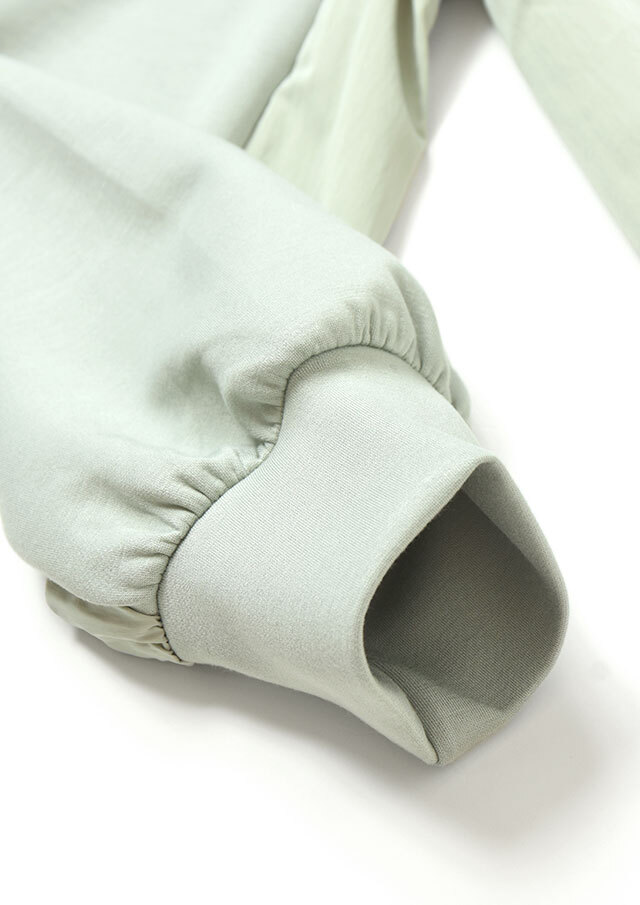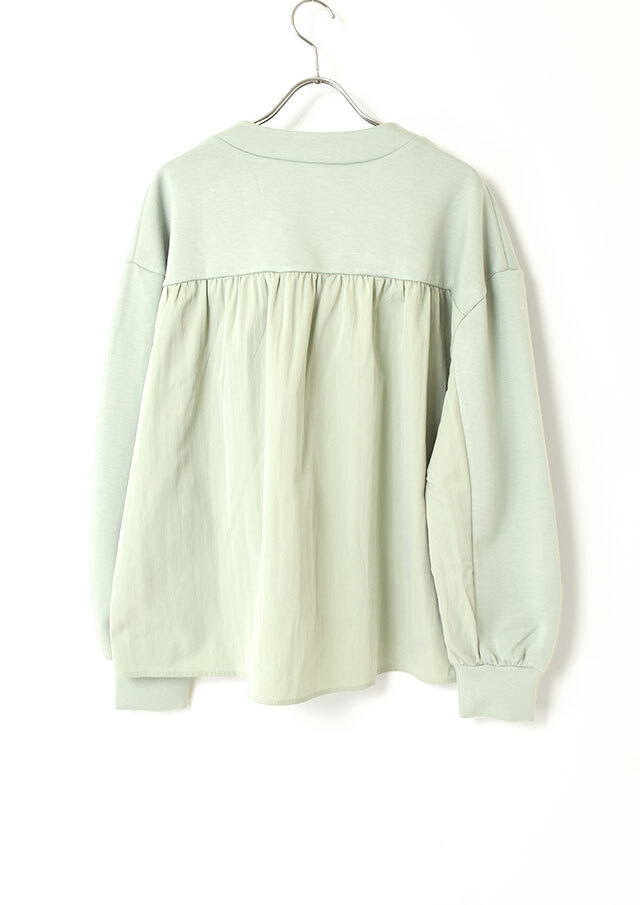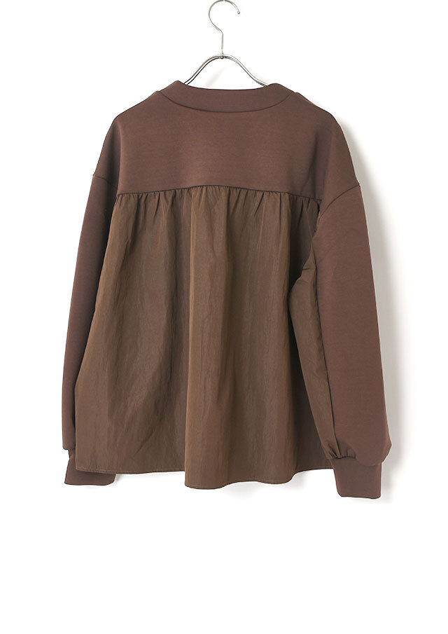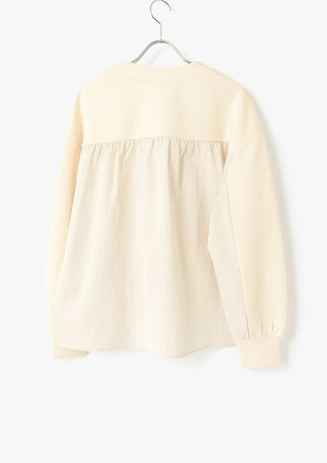バックヨークと袖の一部には、ハリのある布帛生地を切り替え。