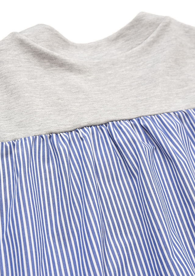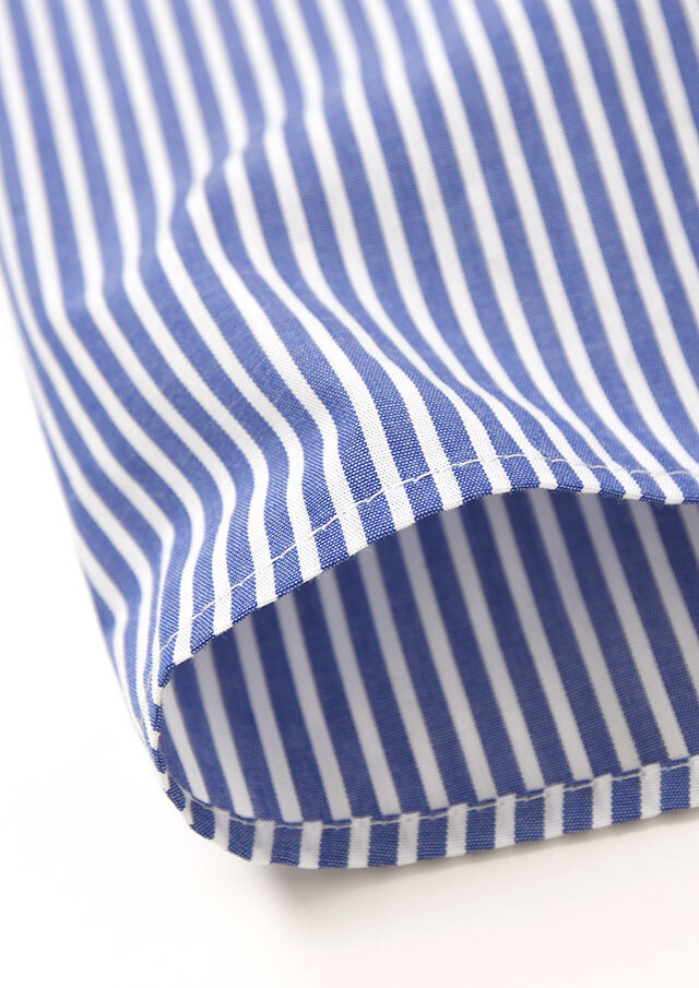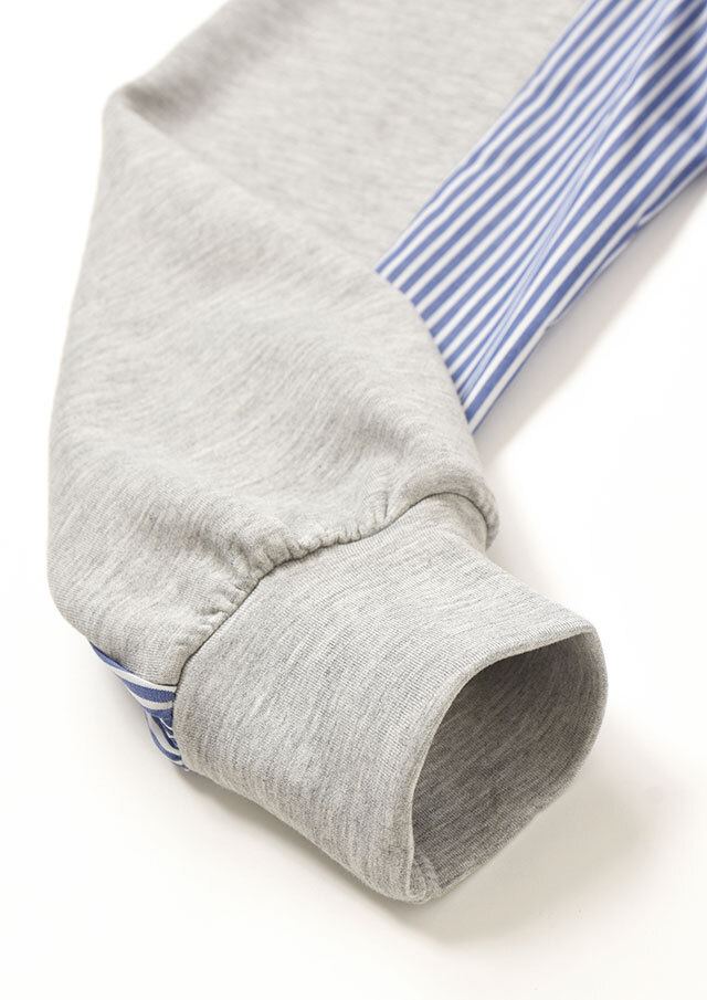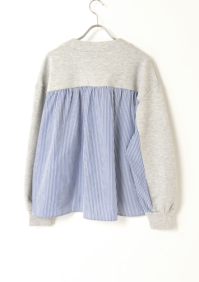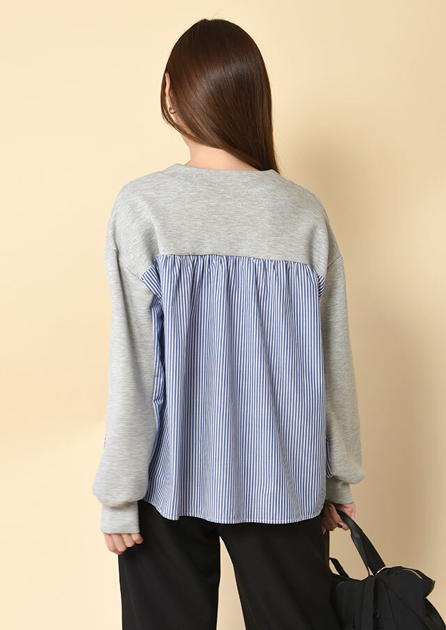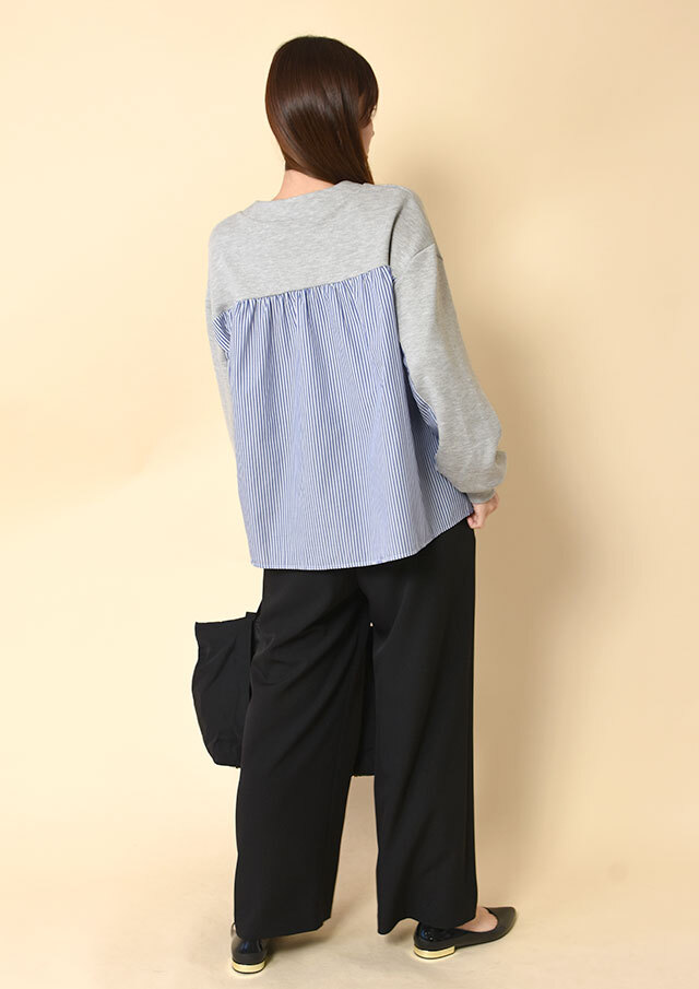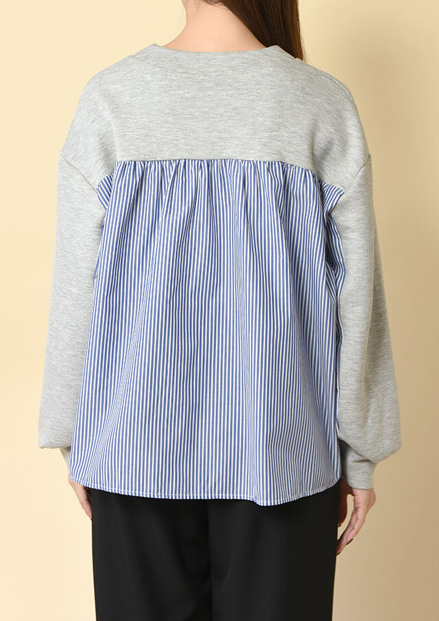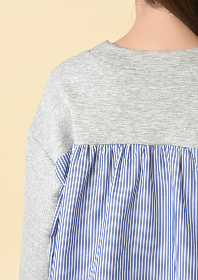 バックヨークと袖の下半分にはストライプ生地を切り替え、後ろ姿にも軽やかさを演出。