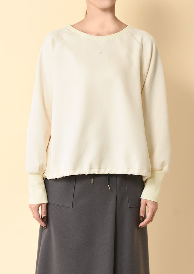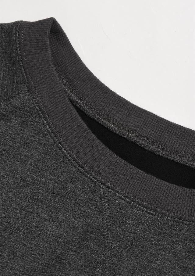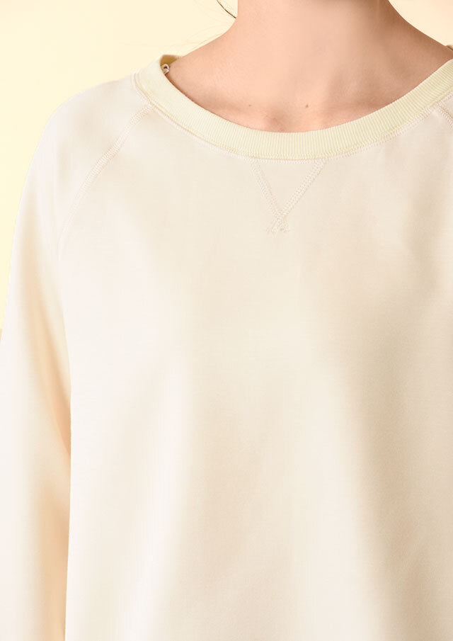 クルーネックのシンプルなスウェットをベースに、ラグランスリーブで肩まわりに自然な落ち感を持たせました。