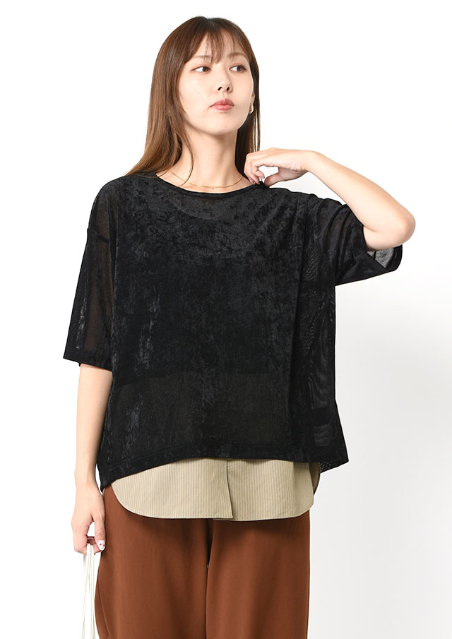 奥行きのある透け感が楽しめるテトロンシアー素材を使用。
