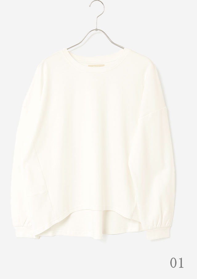 ヨーク部分に寄せたギャザーと前後差のある着丈が、ふんわりとした立体感を演出します。