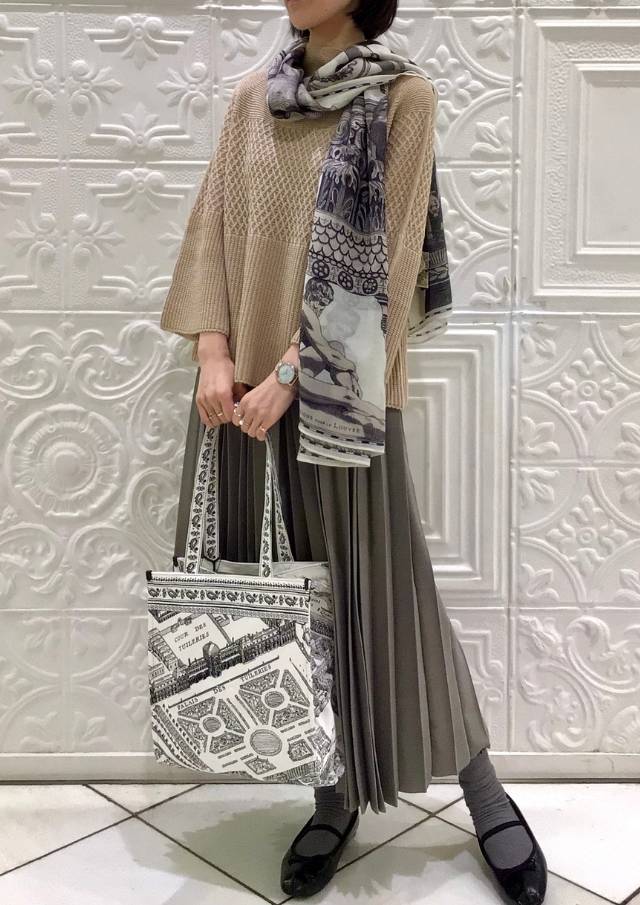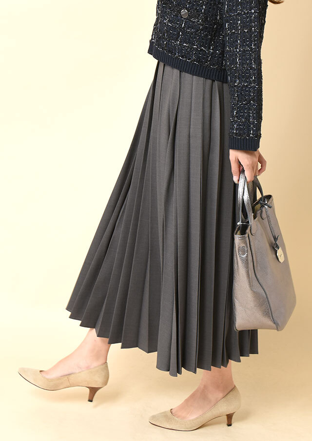歩くたびに揺れるプリーツが、重くなりがちな冬のスタイリングに軽やかさをプラスします。