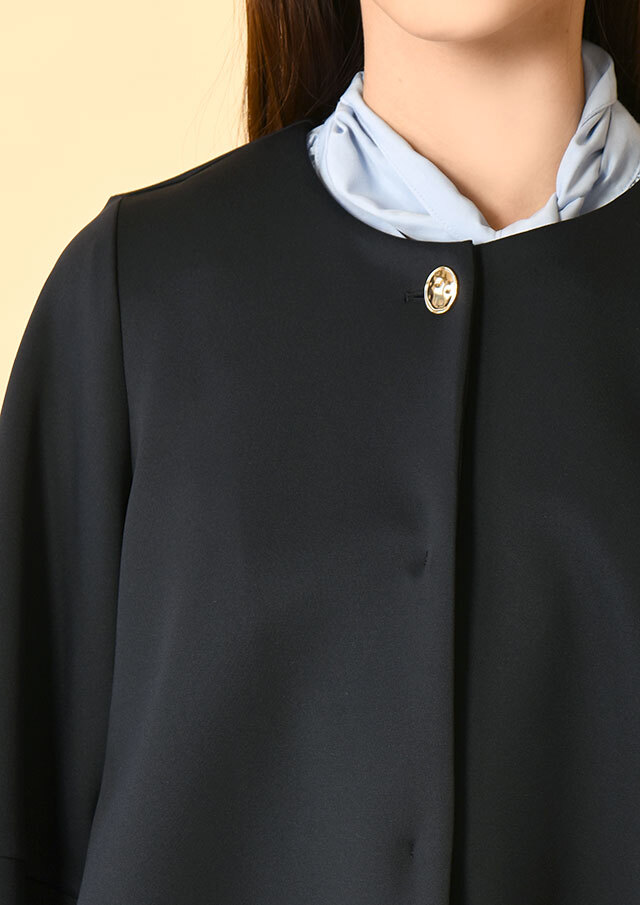 前を留めてコンパクトに着ても、開けて軽く羽織ってもバランスよく決まりそう。