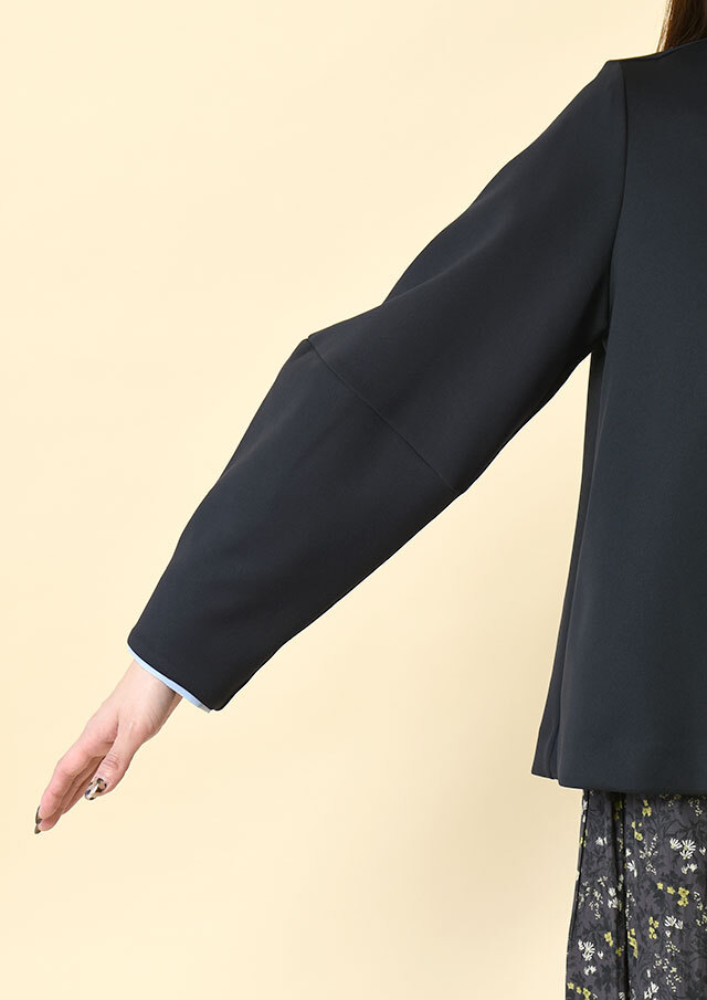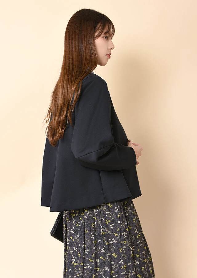 ワンピースの上に羽織れば、ランタンスリーブの丸みがやさしい華やかさを添えてくれます。