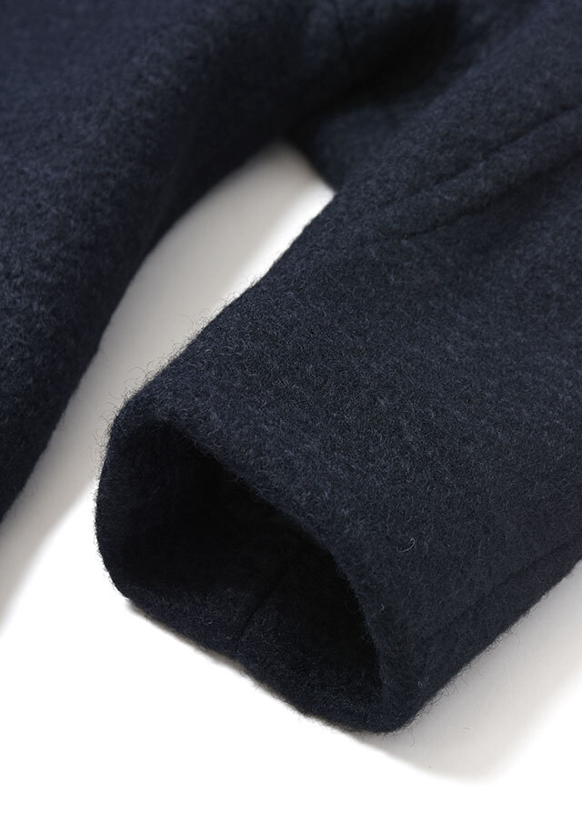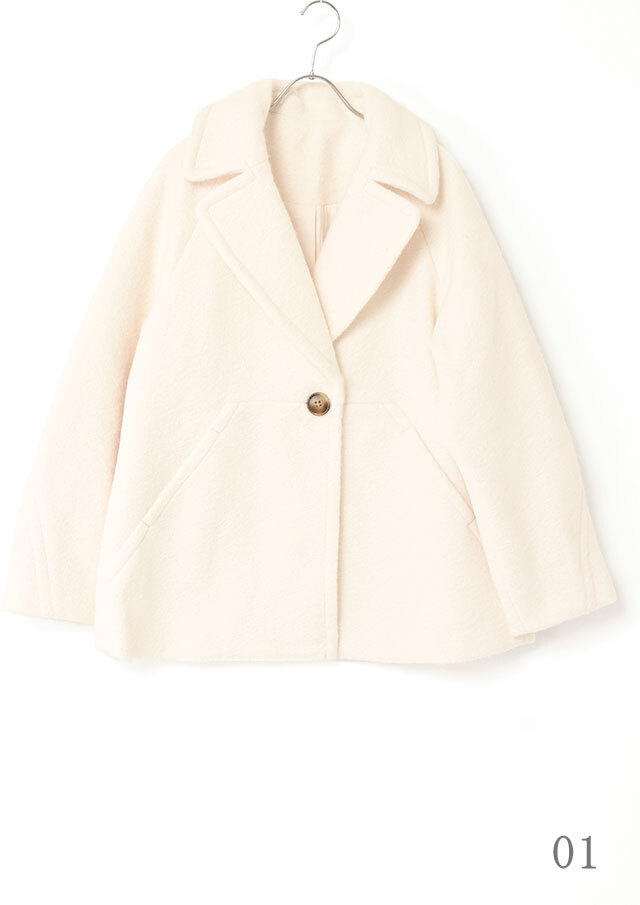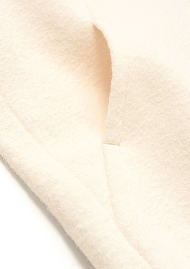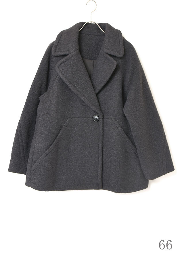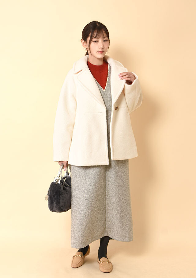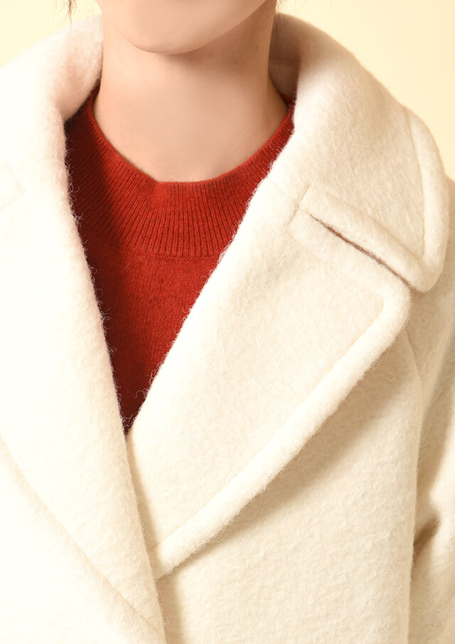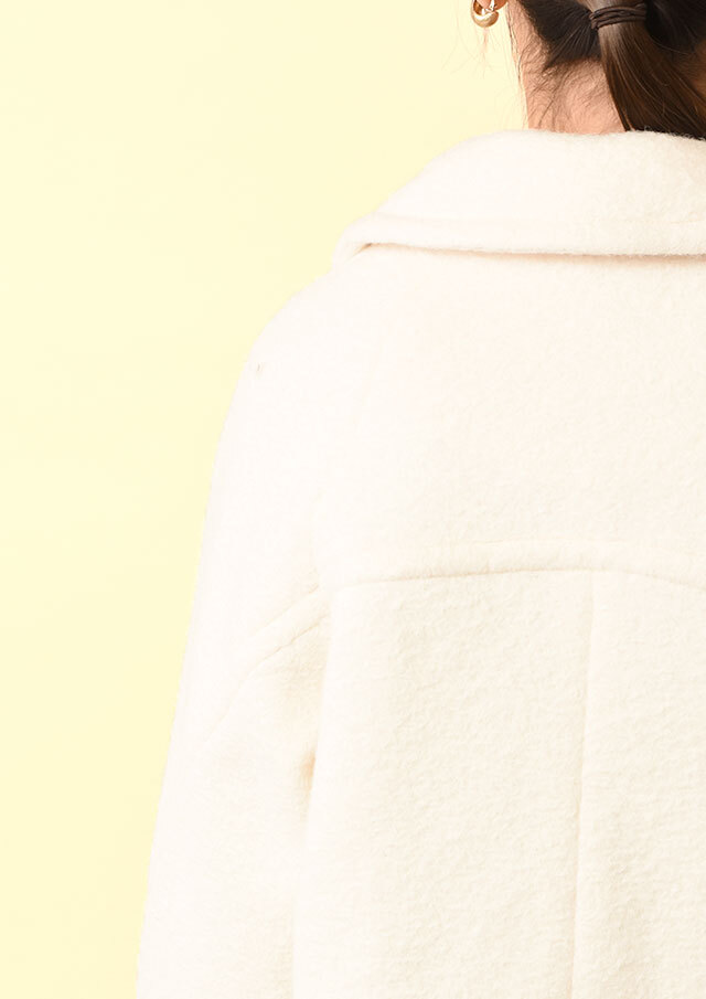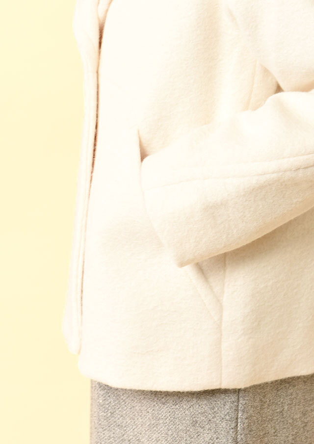 クラシックなPコート風のミドルコートは、裾にダーツを入れることで大人の女性らしいコクーンシルエットを実現。