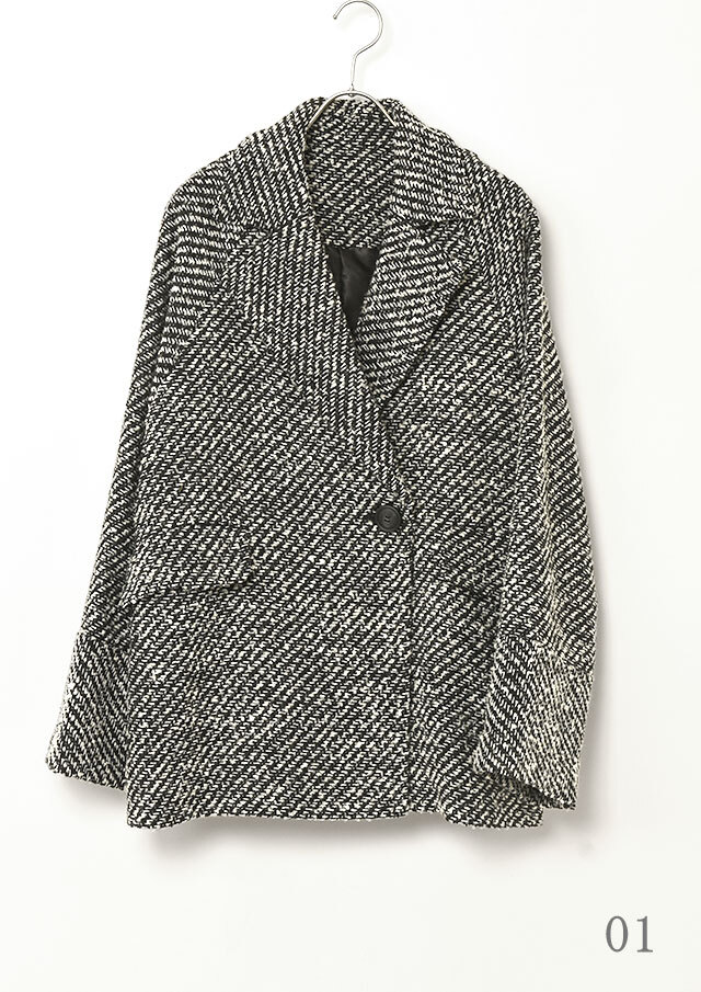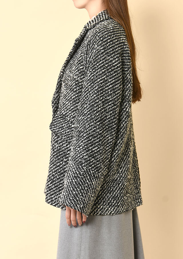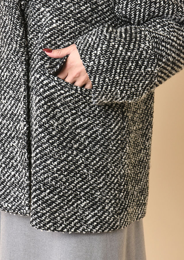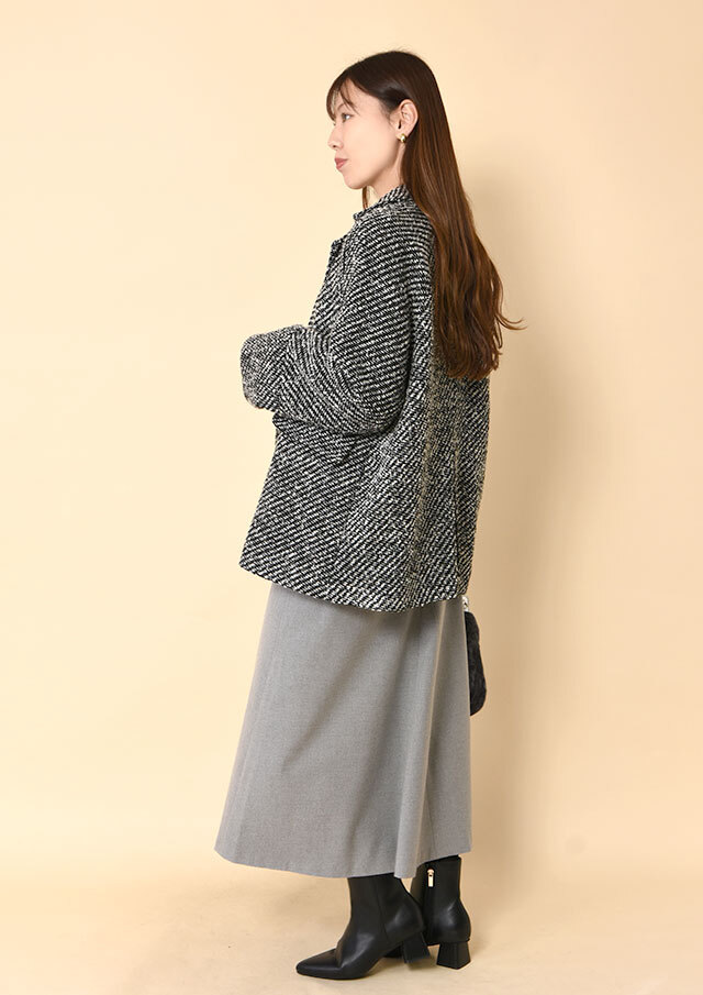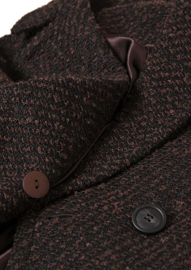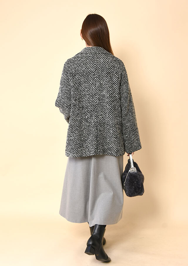 表面にほどよい立体感を生むループヤーンを使用した、季節感のあるミドル丈コートです。