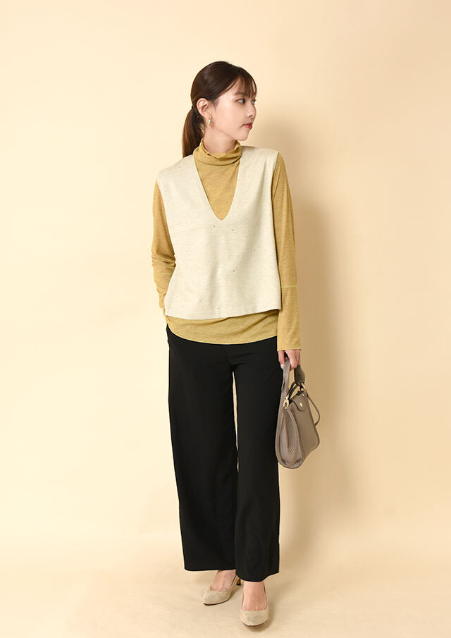 メインのトップスとしてはもちろん、ニットやブラウスのインナーにもオススメです。