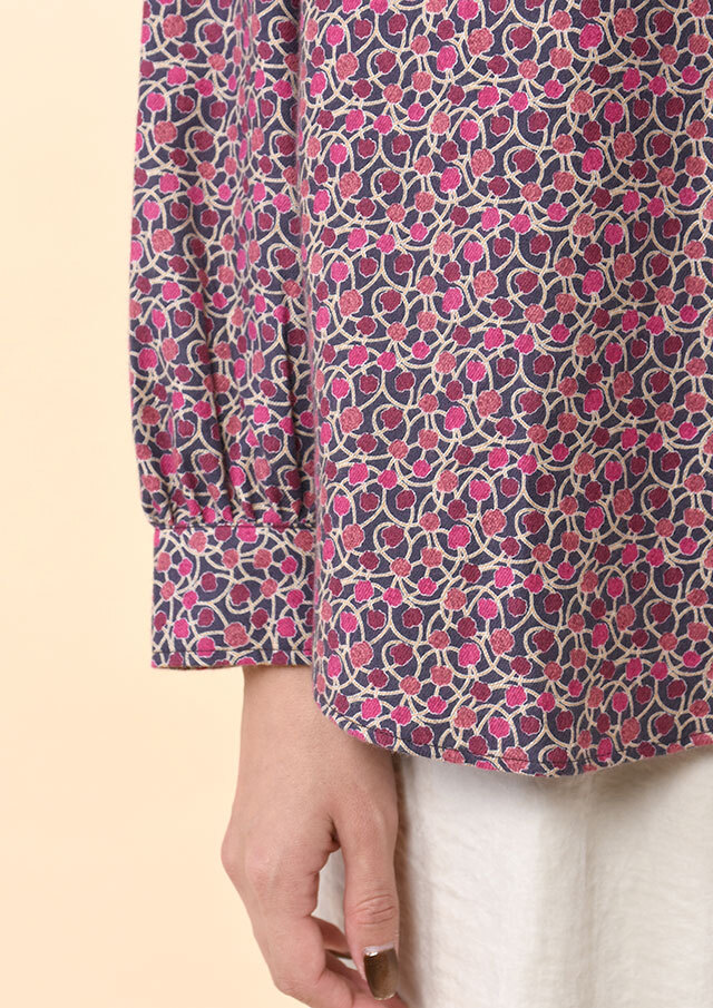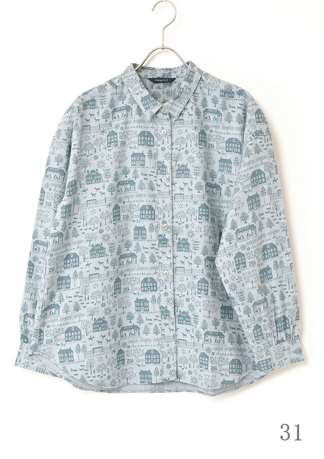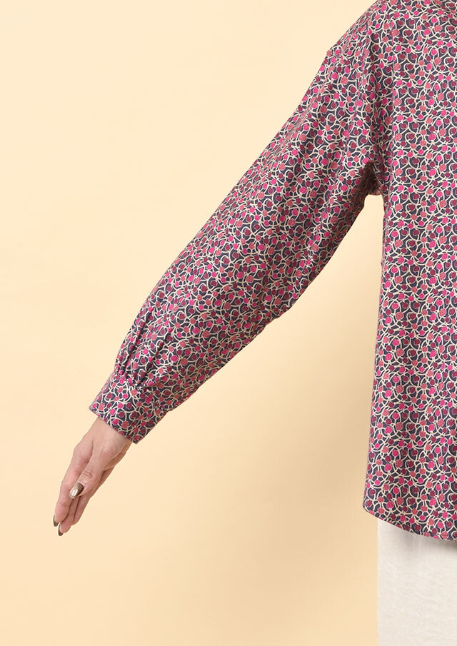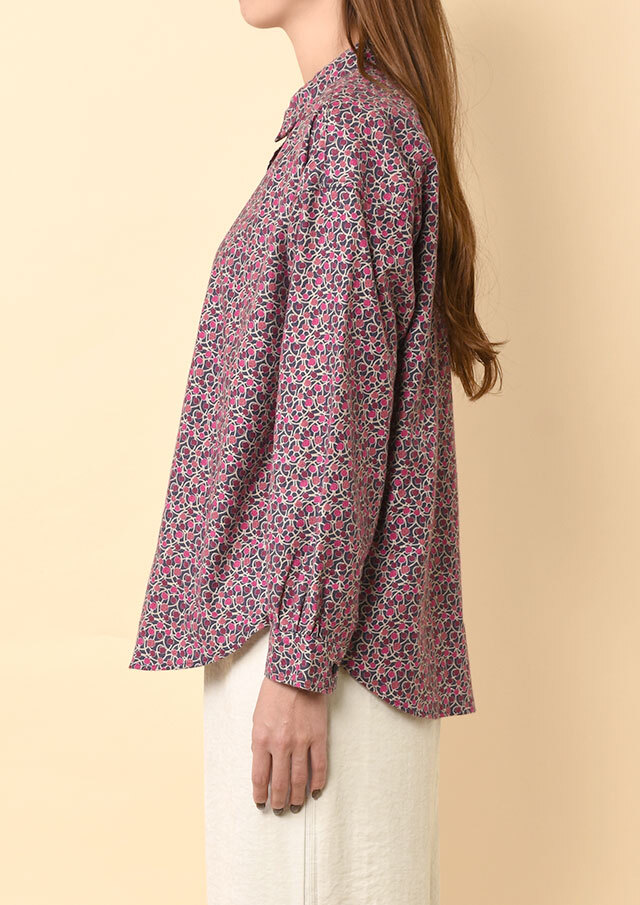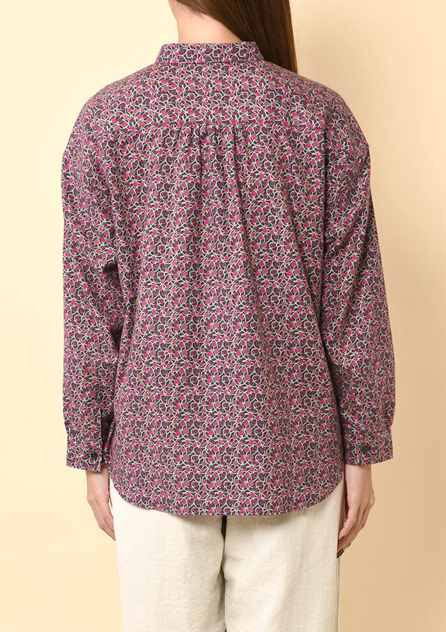胸ポケットのないプレーンなデザインながら、バックヨークにギャザーを寄せてどこかフェミニンな印象に。