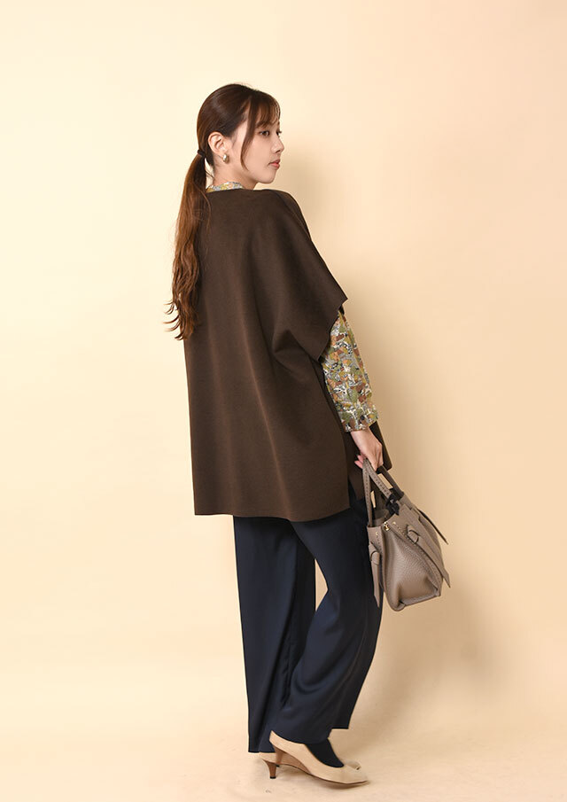 肩巾を大きくとることで、ドロップショルダー気味のシルエットにし、華奢な肩ラインを作り出します。