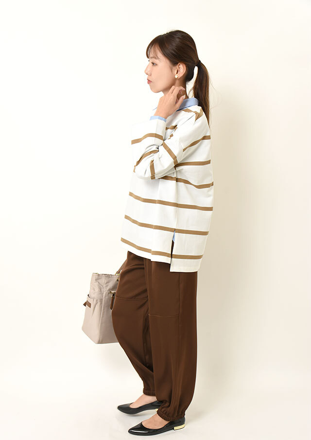 肩や袖にゆとりをもたせたシルエットは、程よく抜け感を出しつつ体型を拾いすぎず、着心地もリラックス。