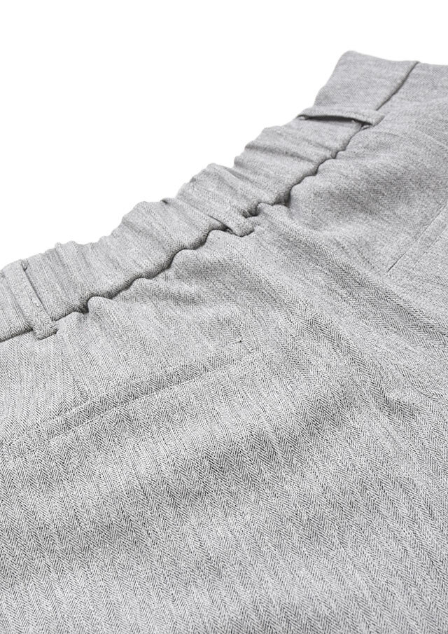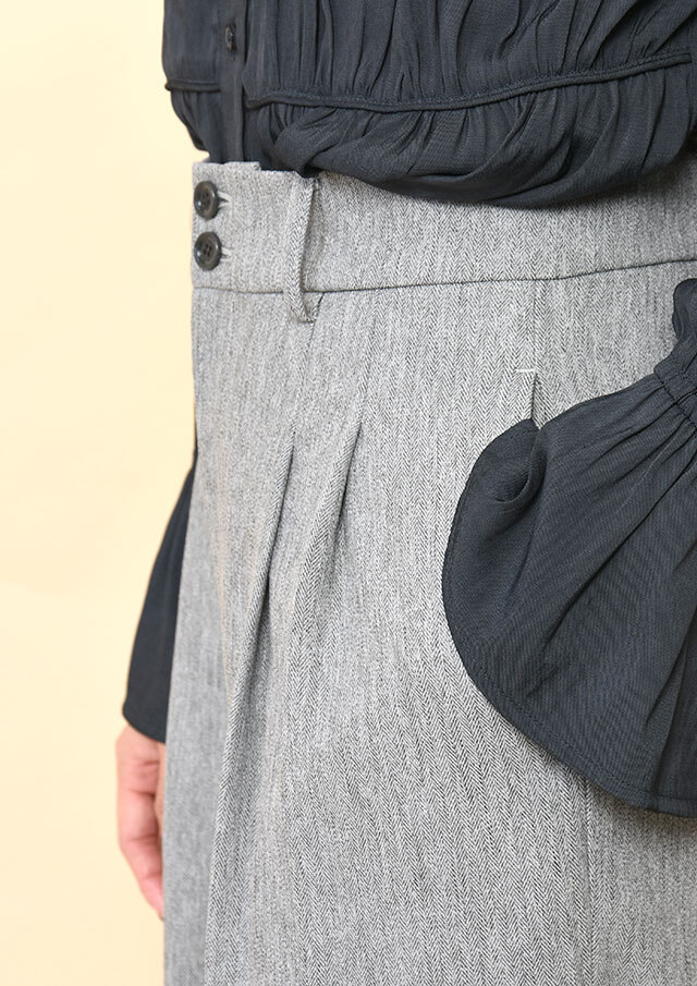 フロントに入った2本のタックが自然な立体感を生み、動くたびにやわらかな表情をプラス。