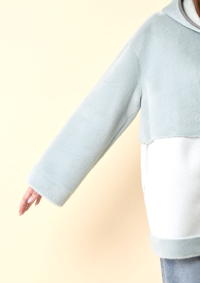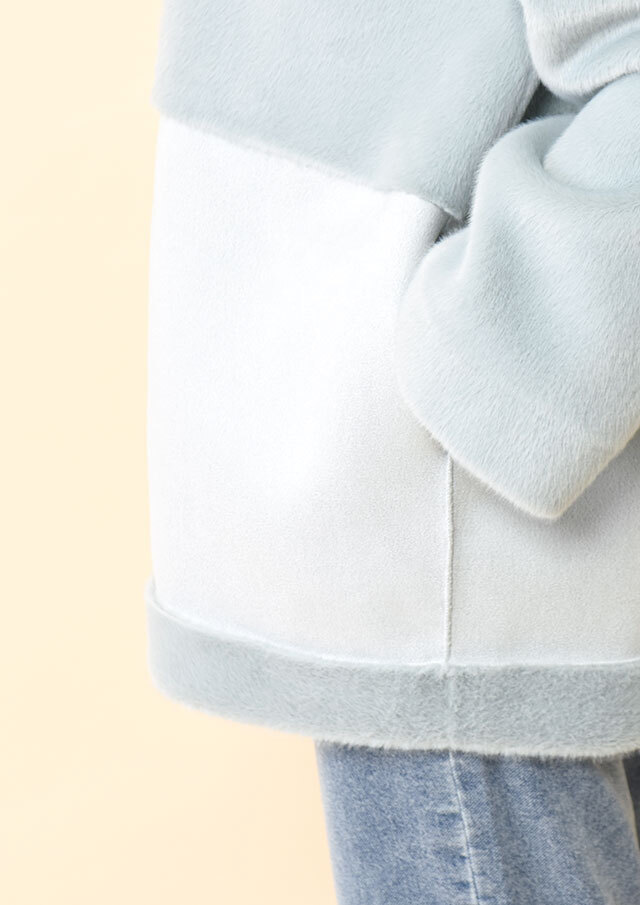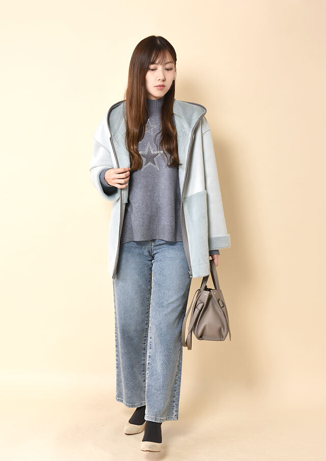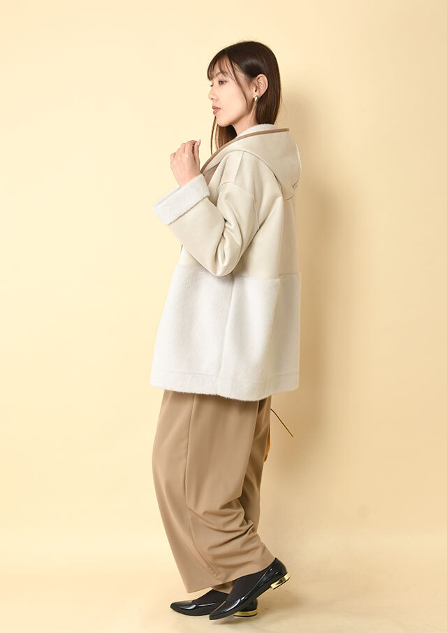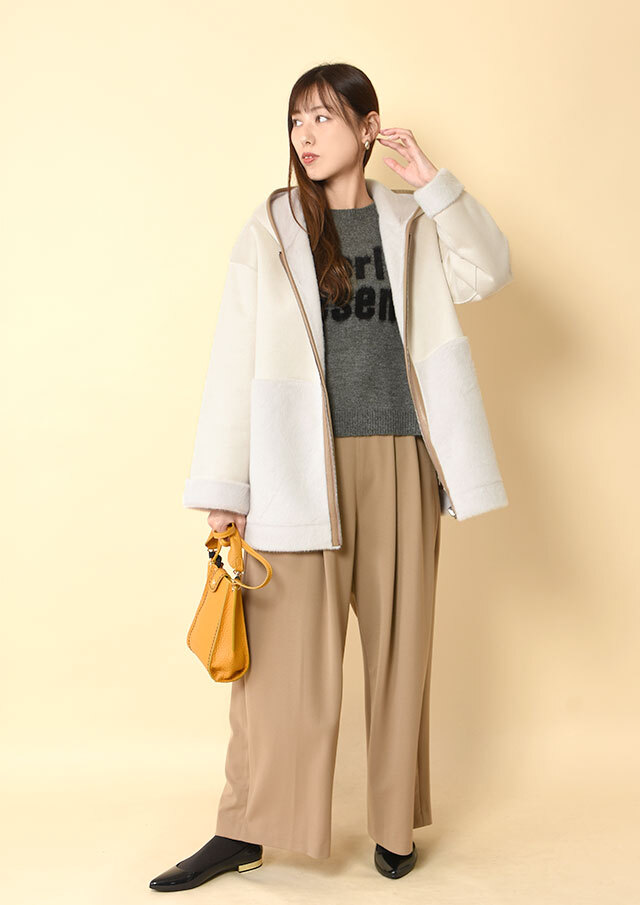 エコファー側をメインにすると、ふわっとした質感が際立ち、ワイドパンツやニットと合わせるだけでやわらかい印象が引き立ちます。