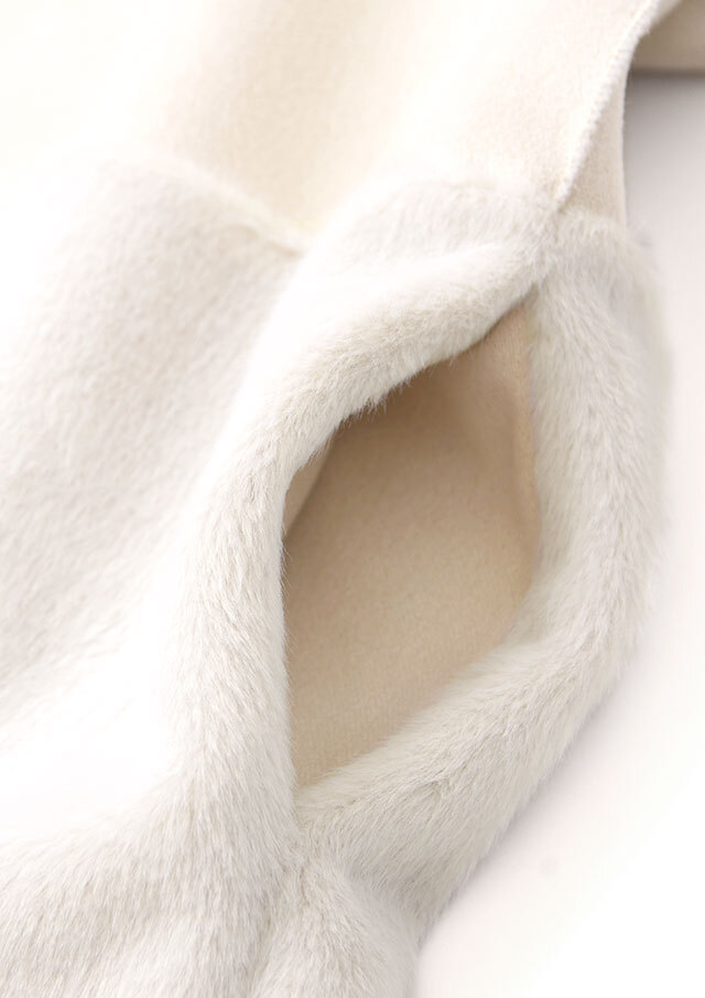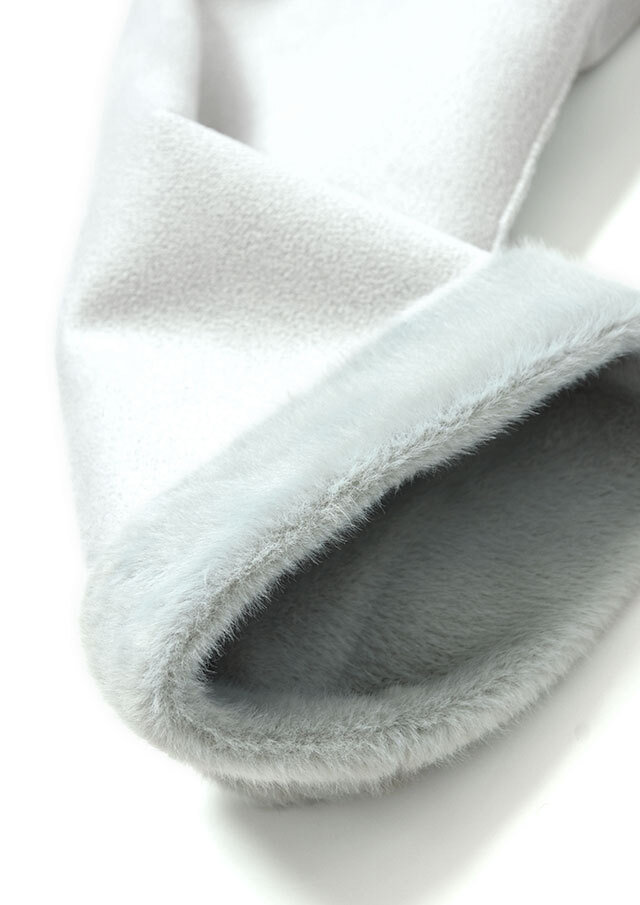 ふんわりと軽いフェイクムートンを使用し、表面はスエード調の落ち着いた質感に仕上げています。