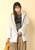 フードのパイピングがさりげないアクセントになるため、無地のニットやワンピースに合わせても単調にならず、大人のデイリーに寄り添うスタイリングが完成します。