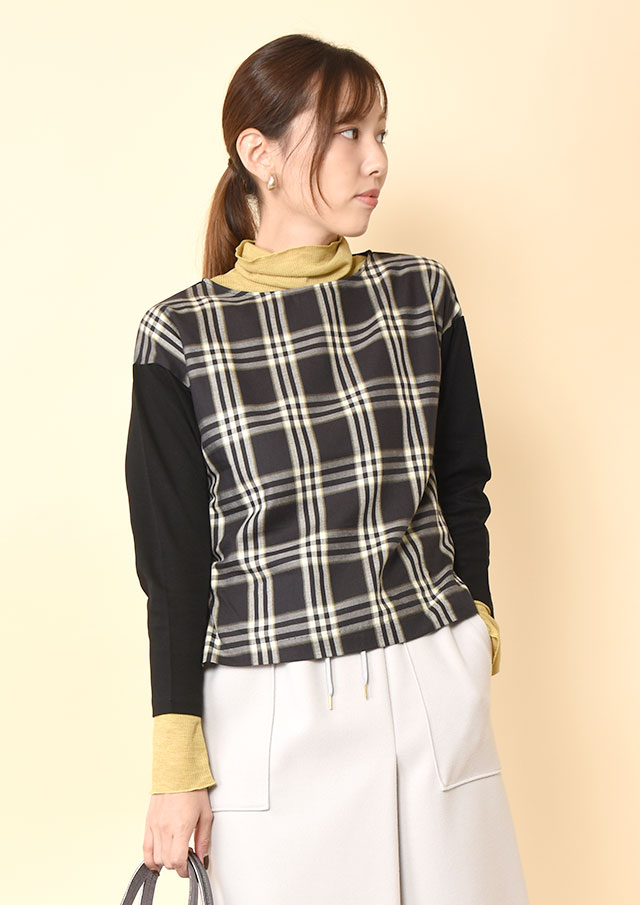 季節の立ち上がりには、リブのハイネックニットを合わせて、質感のコントラストを楽しむスタイルがオススメです。