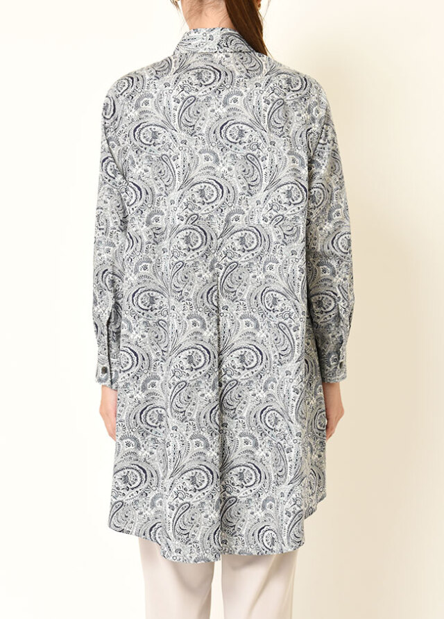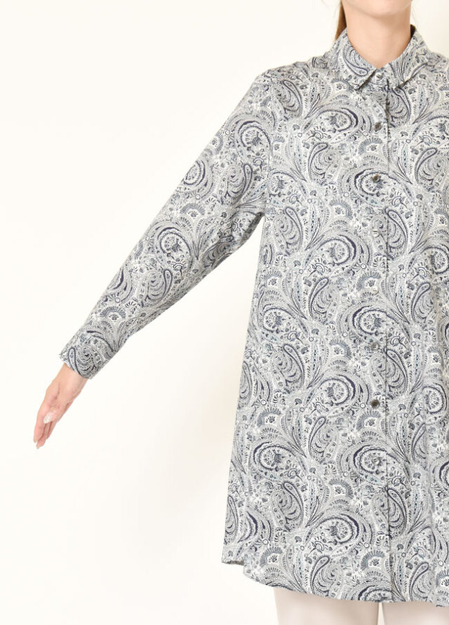 シャツカラーとヒップラインが隠れる程よい長さのロングシャツチュニック。