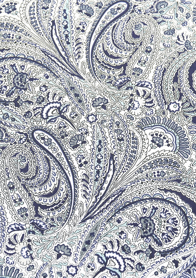 高密度できめ細かいペイズリーは1970年代にプリントされたリバティのアーカイブデザインからインスピレーションを得ました。