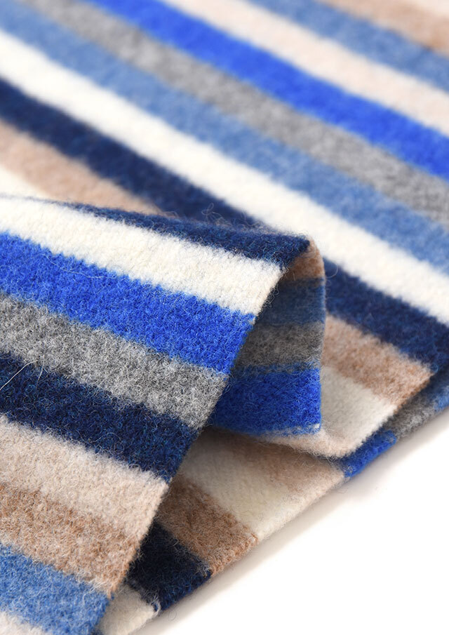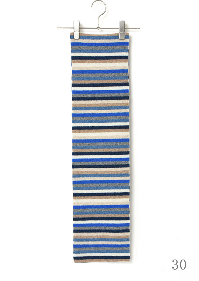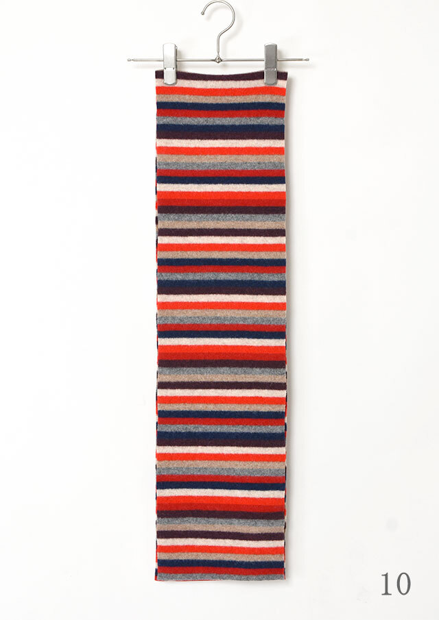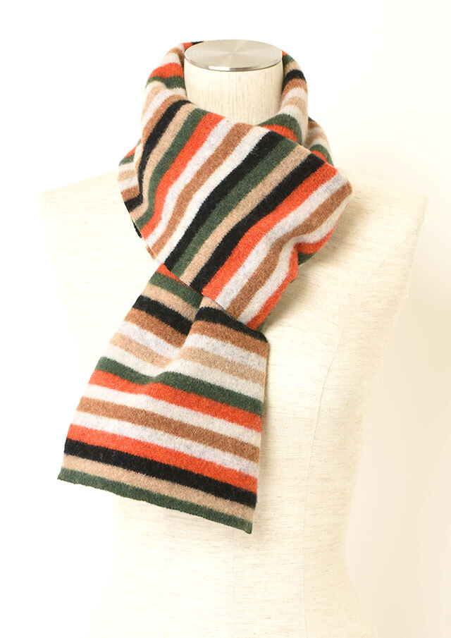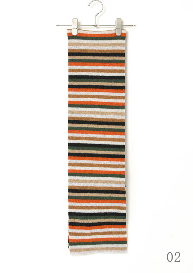 洗練されたカラー配色と細ピッチなボーダー使いが印象的なマフラー。