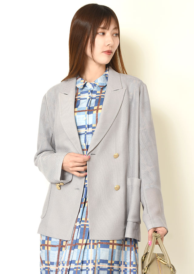 フロントにはウエスト切り替えまでボタンを配し、端正な雰囲気に。
