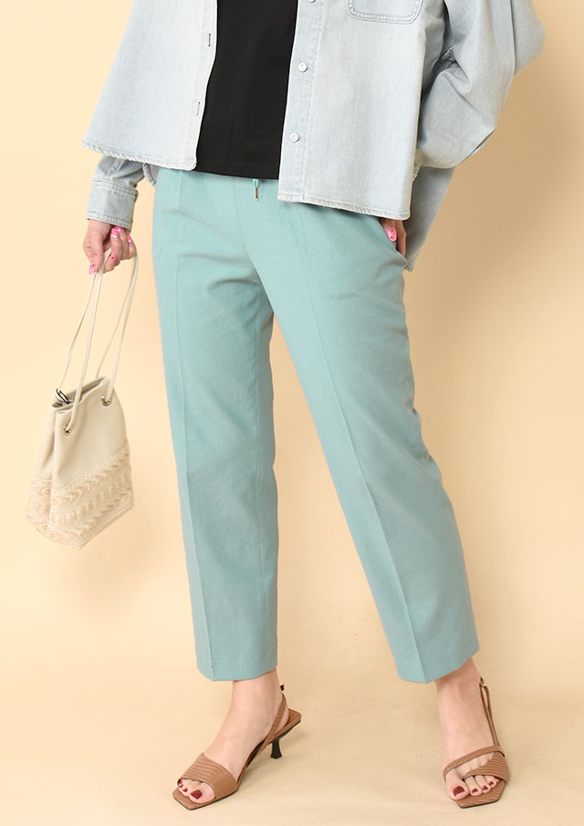 前身のリバティが効いているので、シンプルなボトムでもどこか華やいだ印象になります。